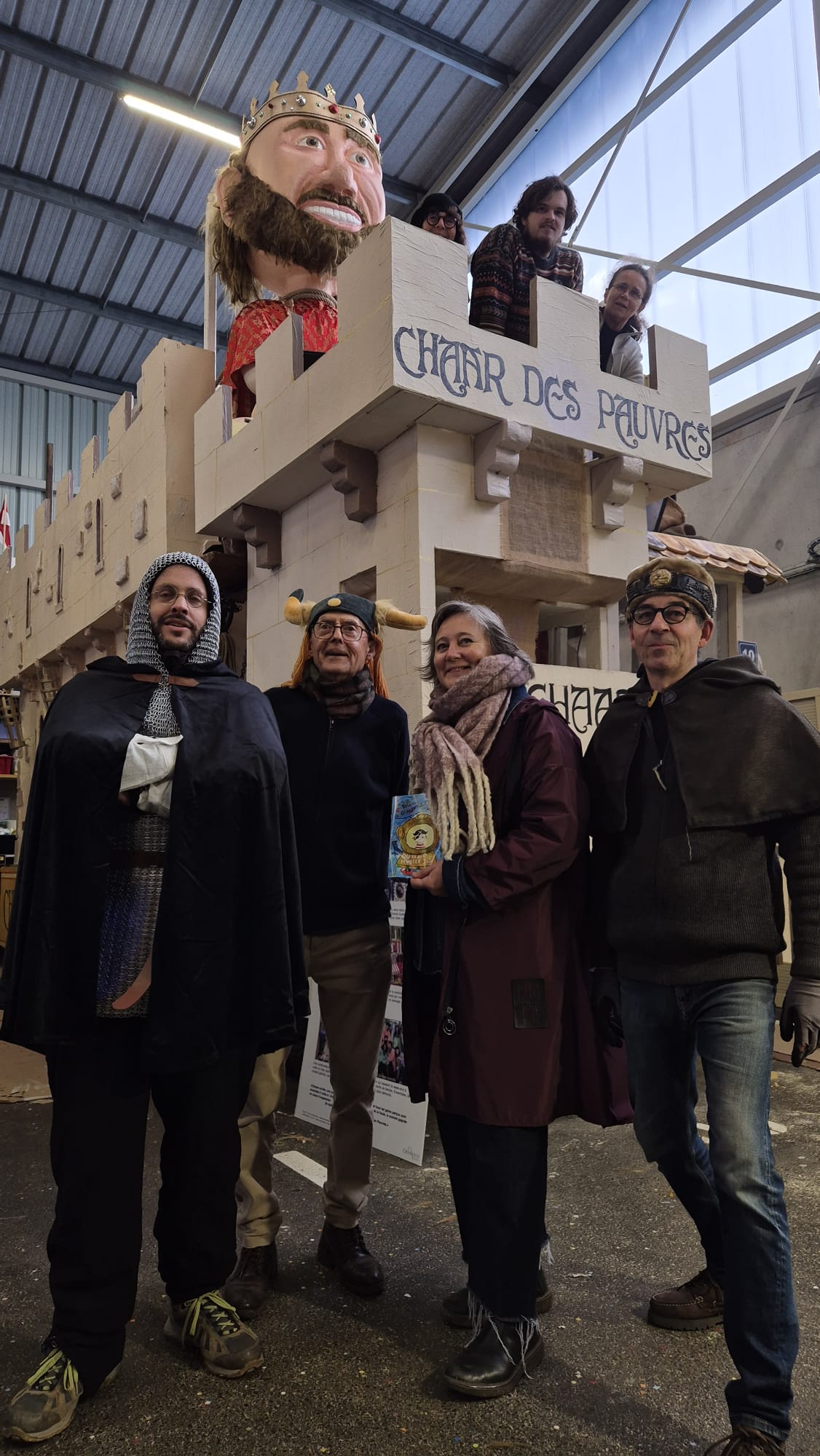 Ces constructeurs passent leurs week-ends d’automne et d’hiver à créer un char plus ou moins branlant, fait de bric et de broc, de matériaux de récupération, de clous détordus, d’une bonne dose de satire et de générosité. La famille du char, composée d’une soixantaine de personnes, petits et grands, jeunes et vieux, se réunit ensuite pour Carnaval, pour perpétuer cette tradition. (Et faire la fête)